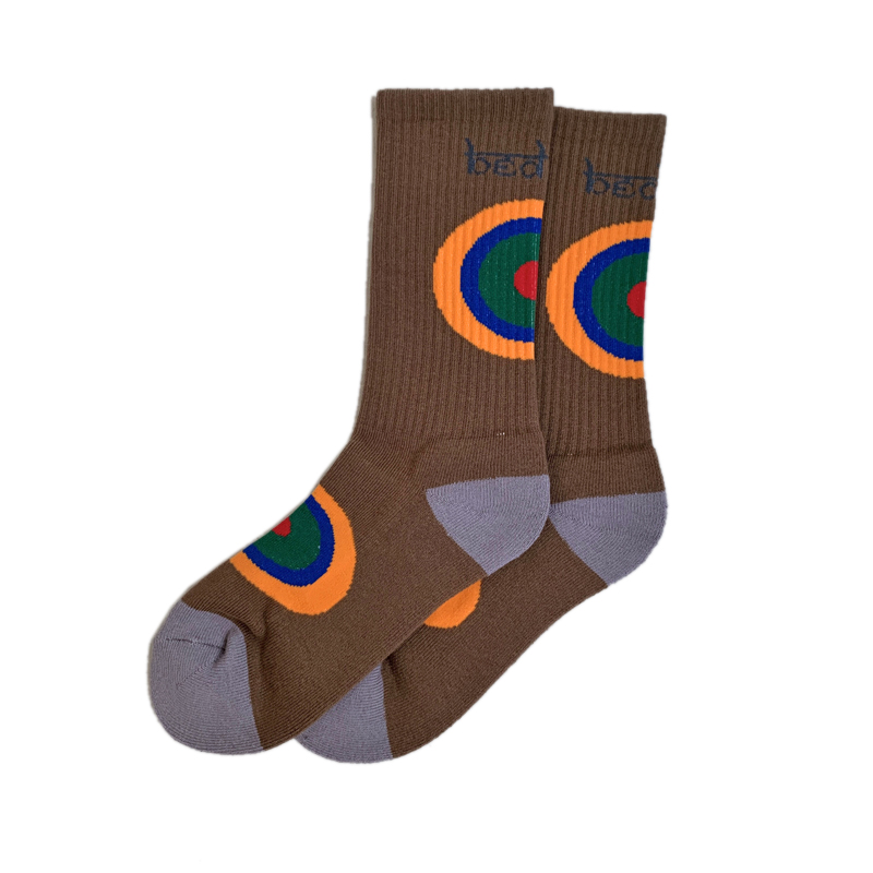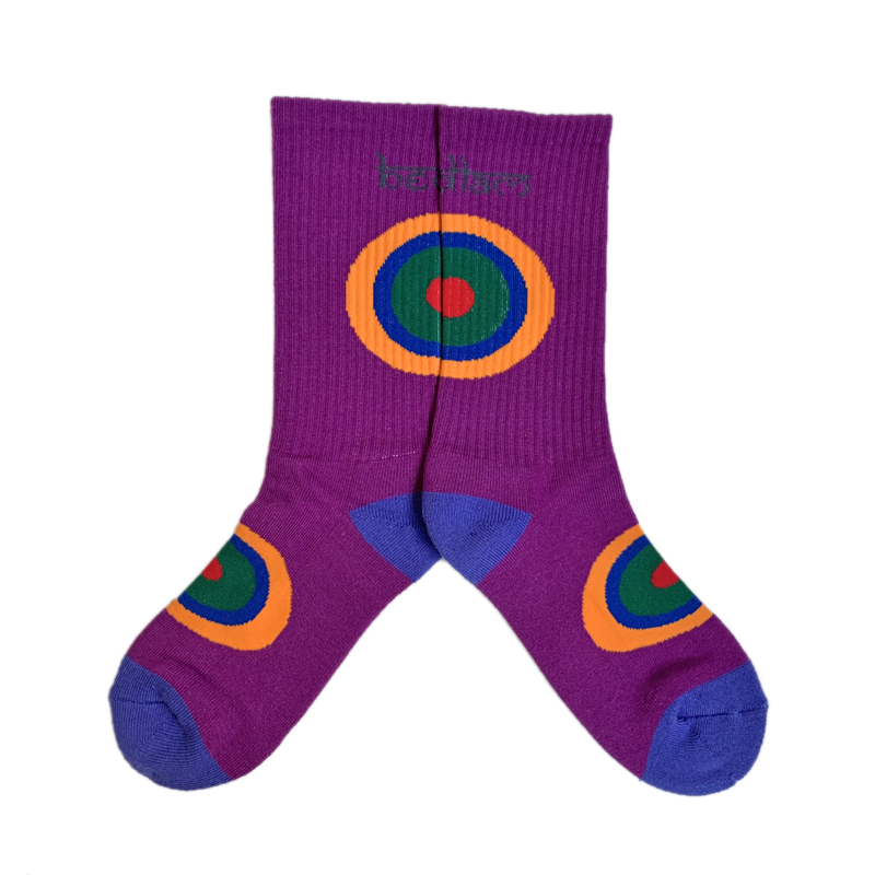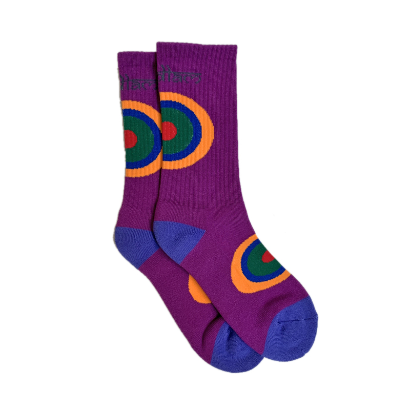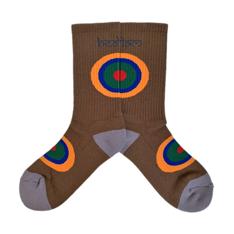 どちらも面白い目を引くカラーリングで、足の甲とアキレス腱の部分にBEDLAMのアイコン的なTARGET LOGOが織でデザインされております。