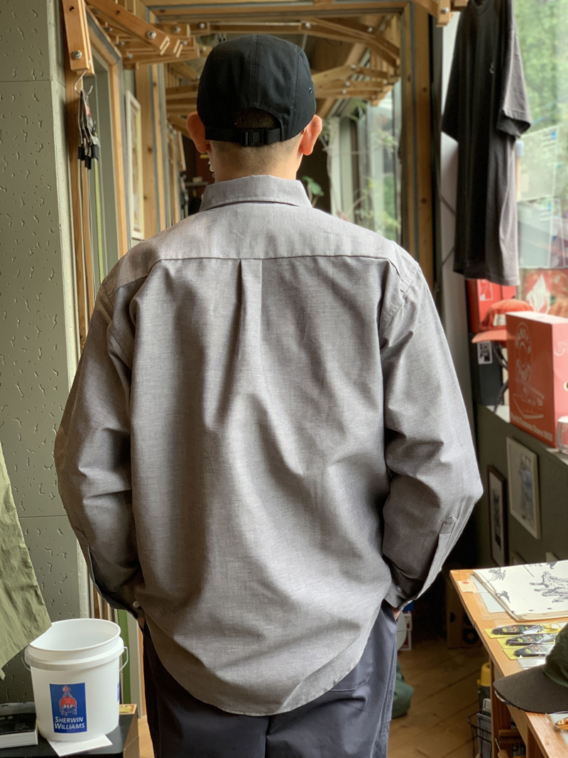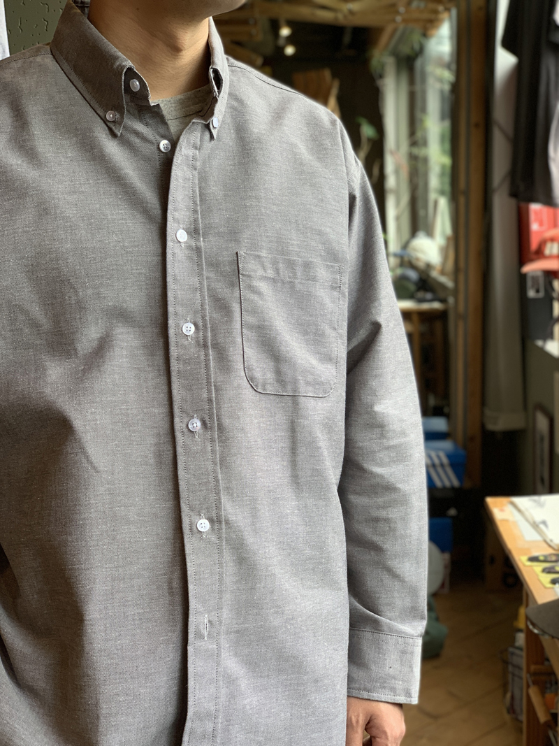 首元はボタンダウン仕様で、バックヨークにセンタープリーツが軽く入ったベーシックなデザインなので、カジュアルにもデイリーユースにもジャケットやニットを合わせて少し上品にも着れる万能感が非常に良いです!