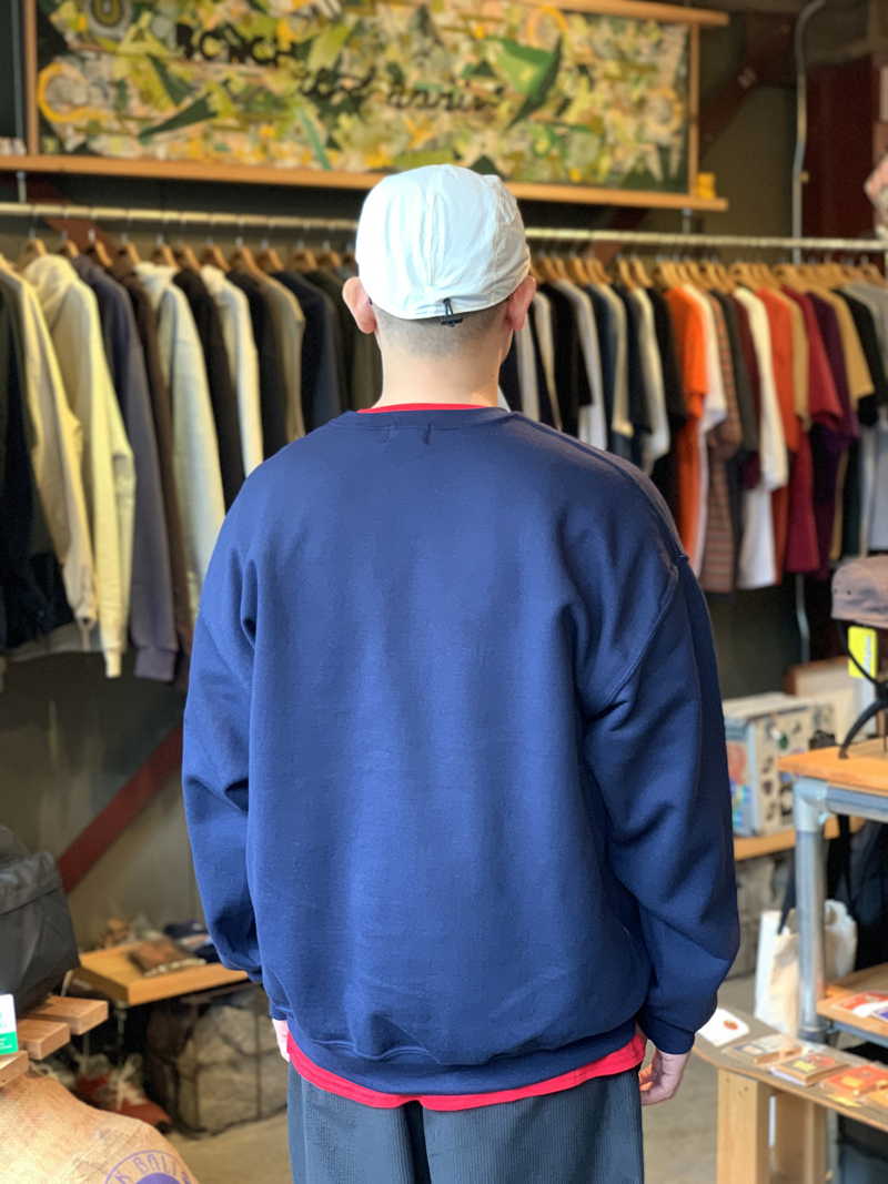 シンプルながらこだわりが詰まったクルーネックスウェットで、お求めやすい価格も魅力の一枚です。178cmがXLを着用。