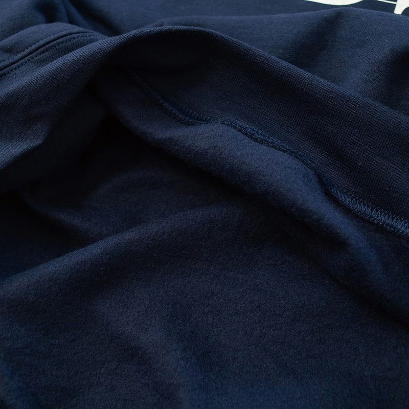 プリントはひび割れ加工で古着のような風合いに仕上げ、ややくすんだオフホワイトのインクでヴィンテージ感を演出していて、ボディにはコットン・ポリエステル50/50の軽く暖かい素材を使用。