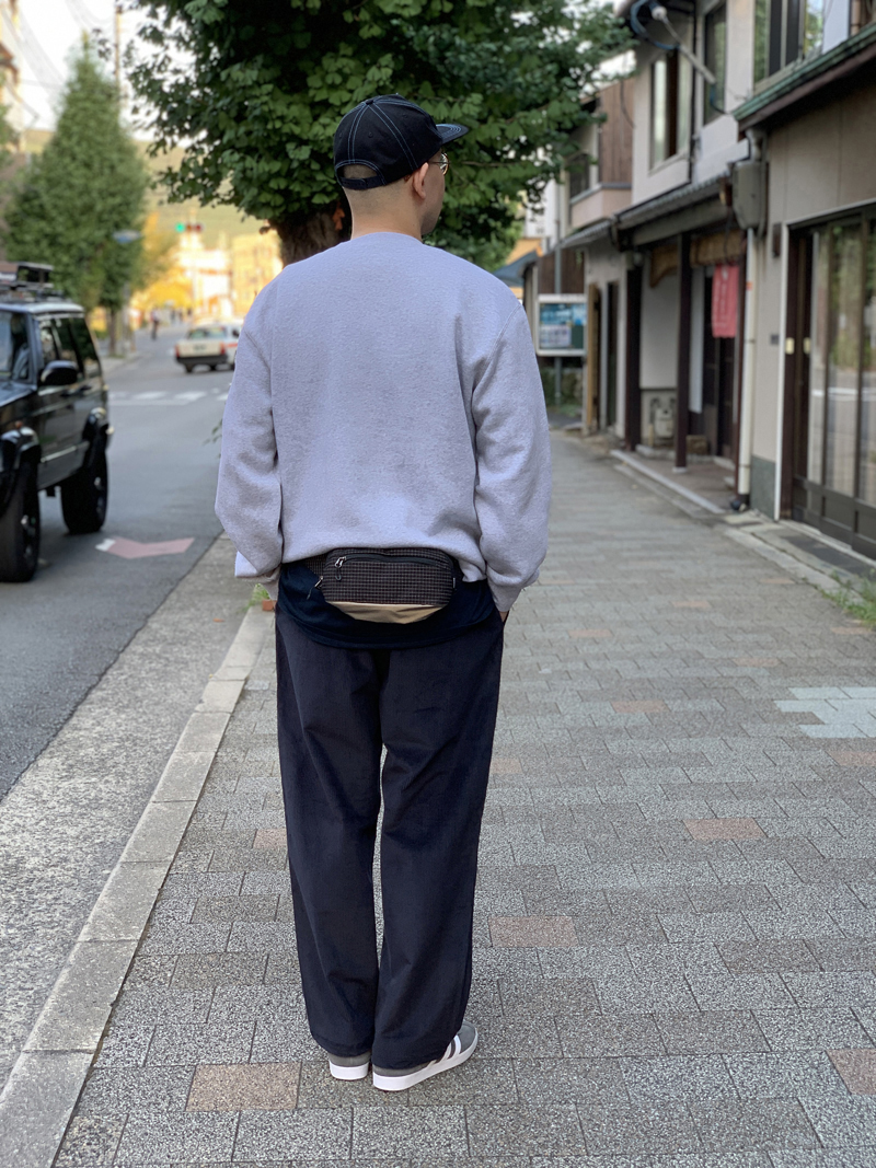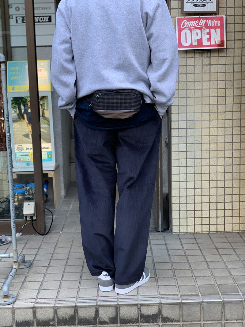 PACKING / Reflective Waist Bag最近再入荷したコーデュロイパンツにMAGICOの可愛らしいグラフィックのプリントされたクルーネックで合わせております。