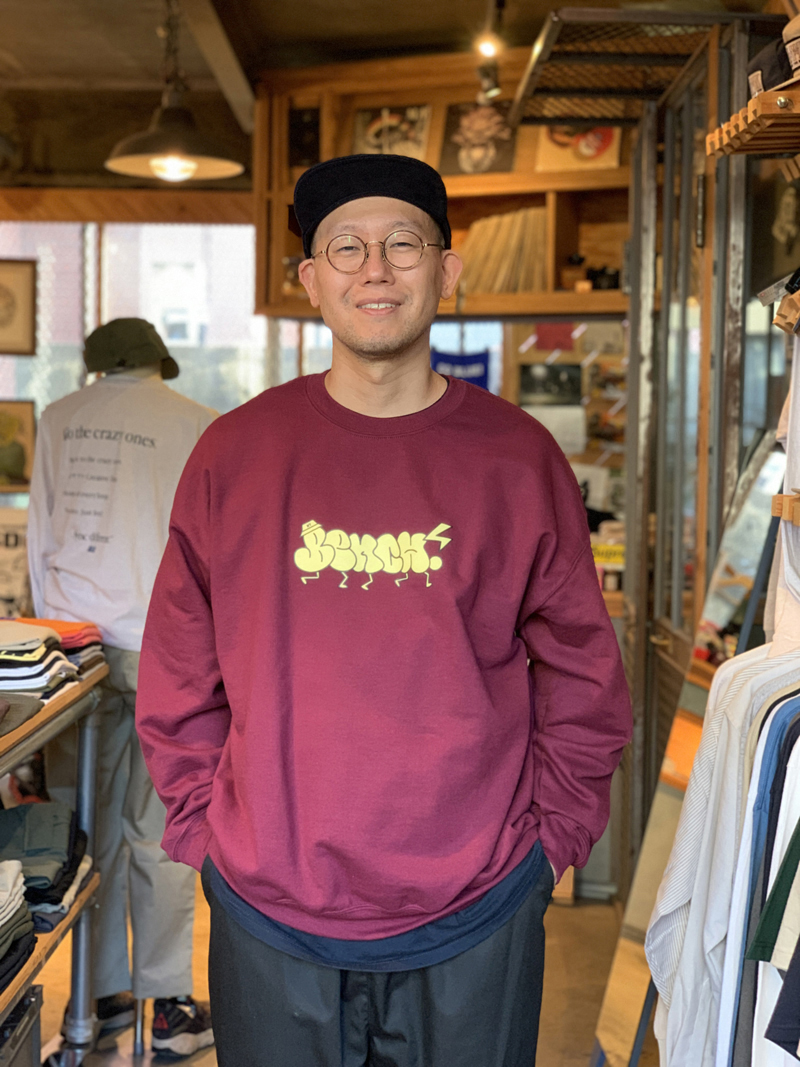 インナーのBENCHのクルーネックも挿し色的なマルーンが気に入っております。