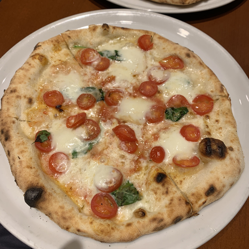 燻製モッツァレラチーズが乗ったこのマルゲリータが生地も美味しいし最高なんです。
