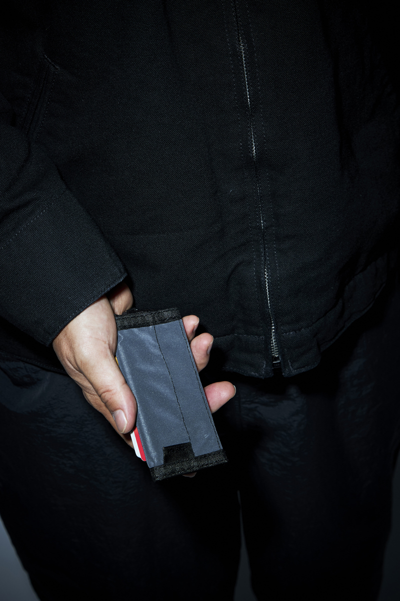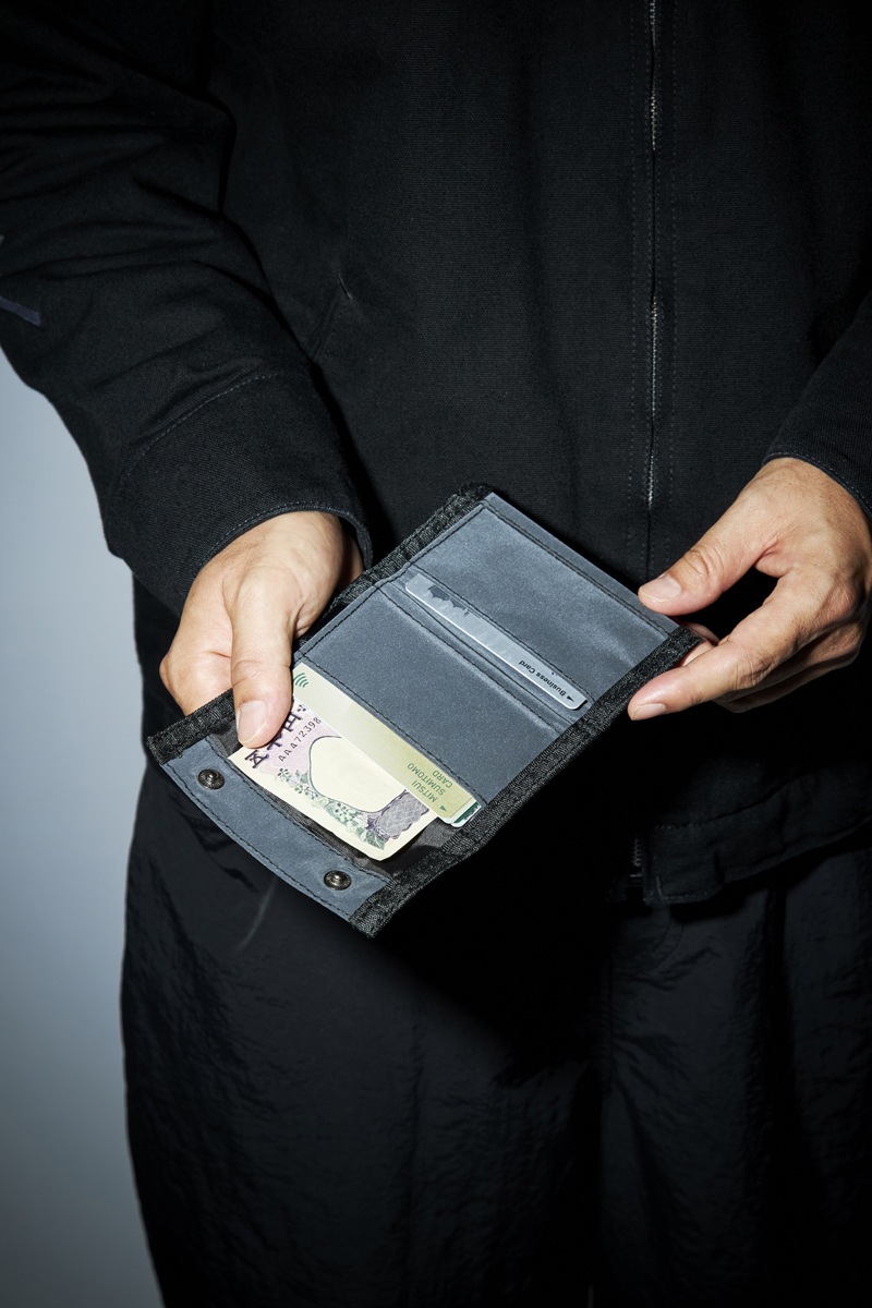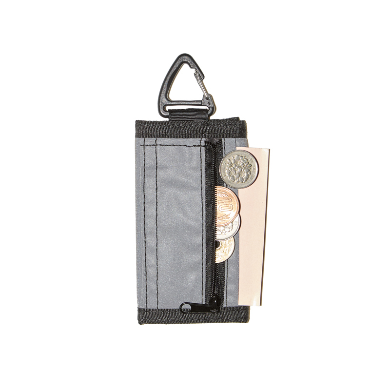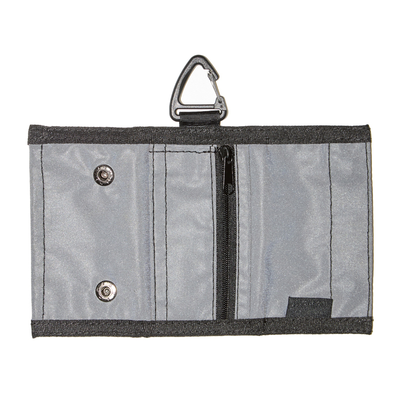 いつものコンパクトウォレットにもリフレクター生地を使用しております。
