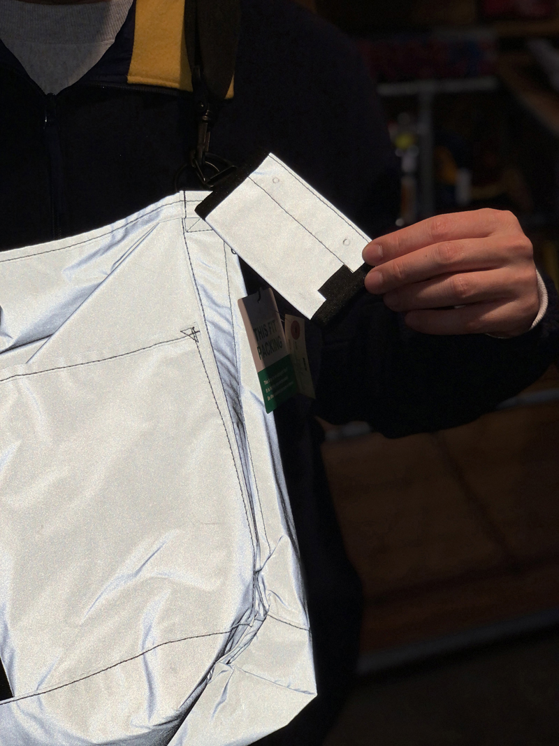 リフレクティブトート&ウォレットがカメラのフラッシュに反応してビカビカになっております。