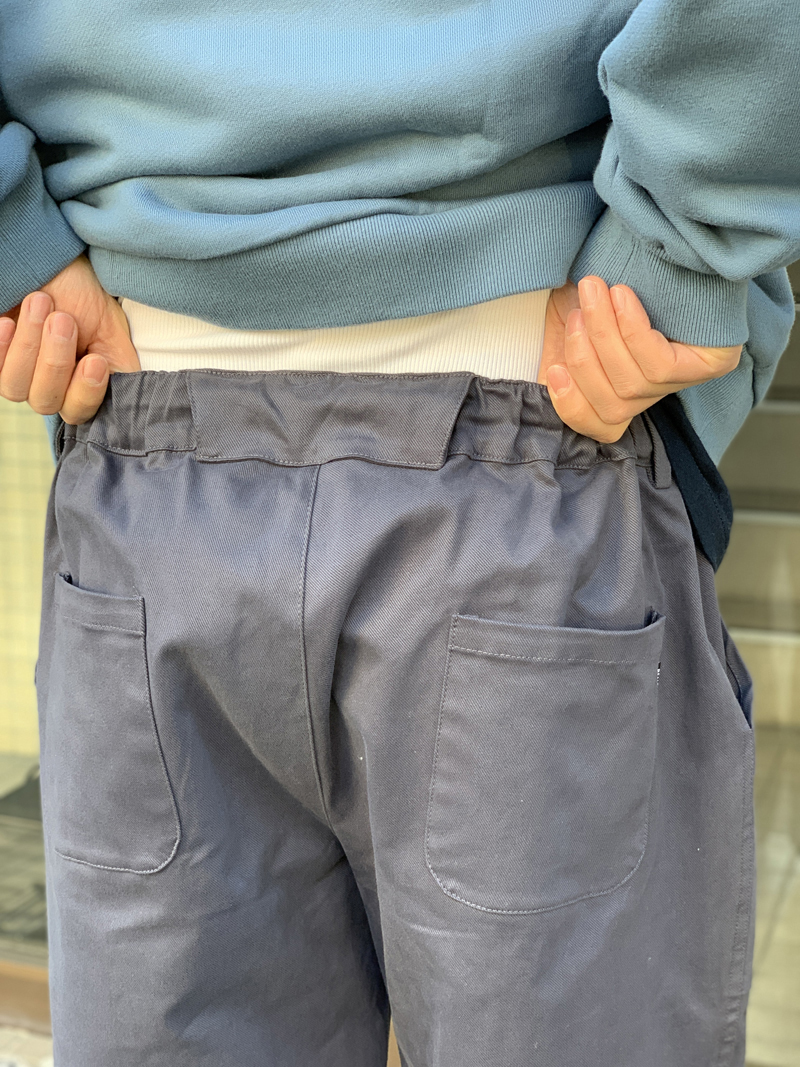 ワークパンツらしい質感を保ちつつ、動きやすさと着用時の快適さを重視しました。
