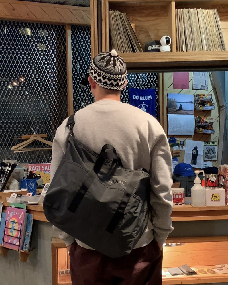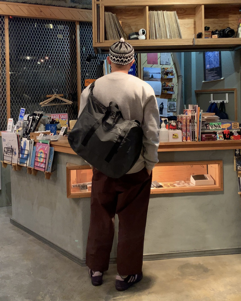 PACKING / BLACK REFLECTIVE TOTE以前から僕が凄く好きなPACKINGのトートバッグ、今回のはリフレクター仕様という事で写真のフラッシュや車のライトで光るのがユニークでオススメしております。