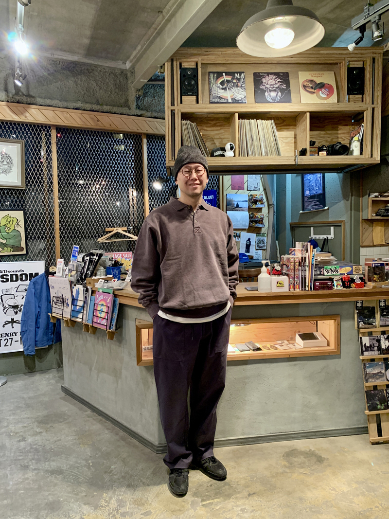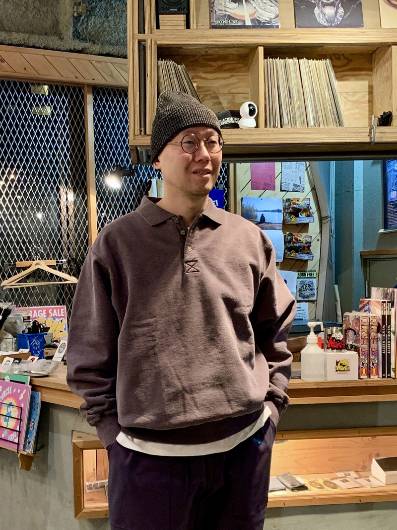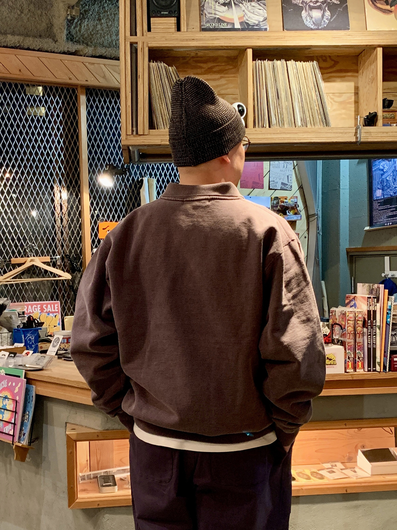 トップスのポロシャツスタイルのスウェットはデザインがユニークですが、ボックス型のシルエットに20ozのヘビーウェイトに洗いを掛けた生地で柔らかくて着心地良いし肉厚さがかなり良いです。