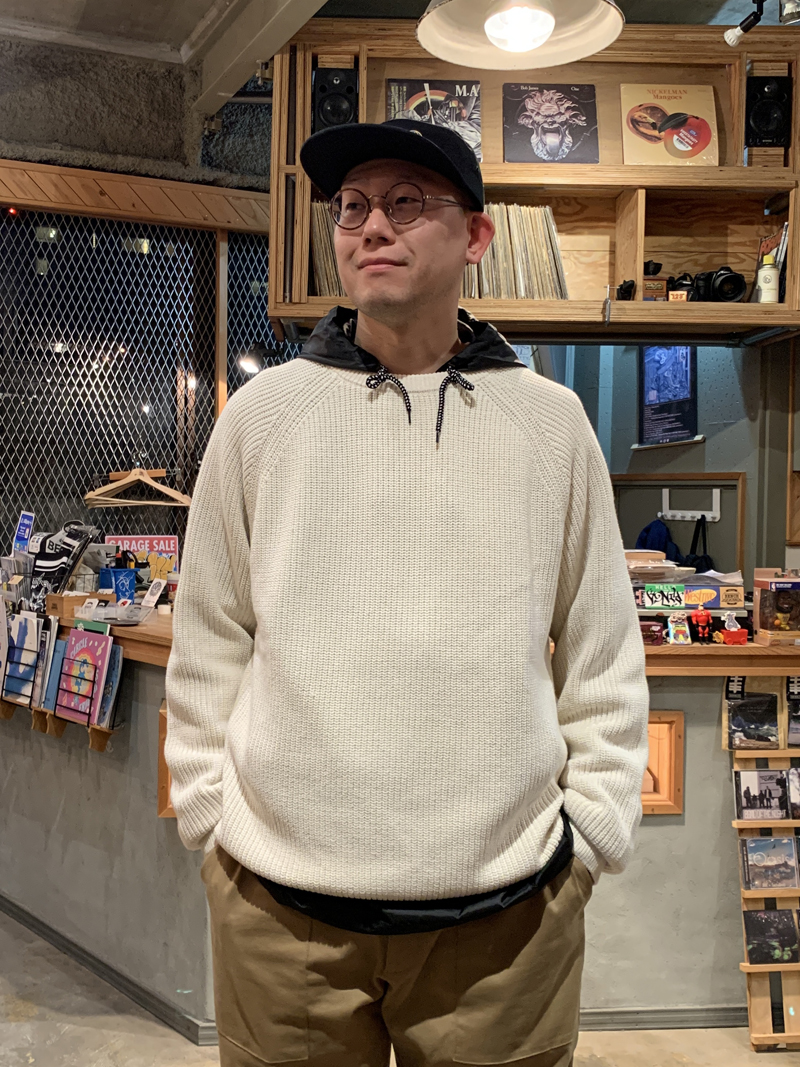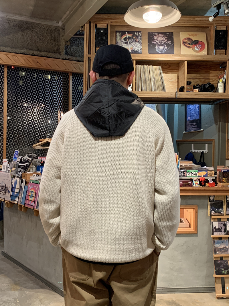 ブラックとオフホワイトの組み合わせであり、ナイロン素材とコットンニット素材のコントラストもなんか良くて気に入っております。