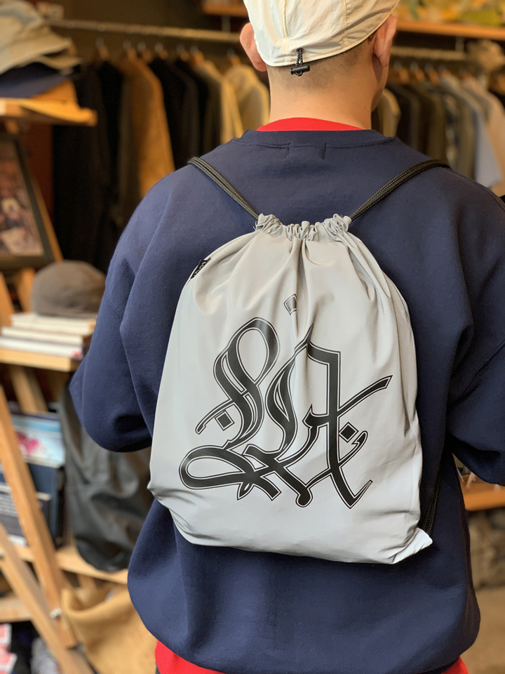 こちらはフルリフレクター素材でリバーシブルになったナップサック兼トートバッグです。