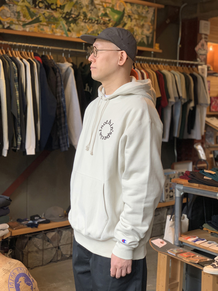 US CHAMPIONのReverse weaveをボディに使用した、Nothin' specialの新作Hoodieです。