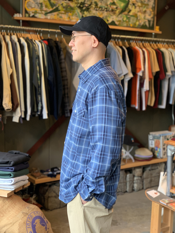 この手のシャツやジャケットは洋画の映画なんかで港で働くお兄さんが実際着てそうなUSっぽいシルエットはもちろん、ブルーカラー感のある雰囲気が非常に良いです。