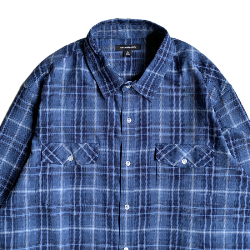 - PORT AUTHORITY / Ombre Plald LS Shirt (Navy)