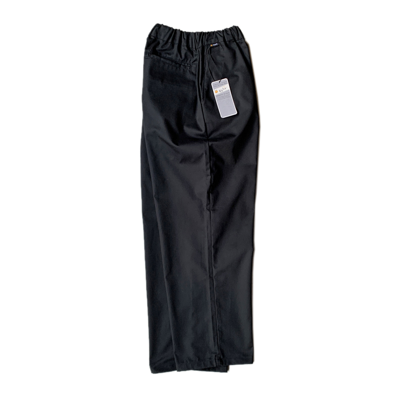 黄金比率のポリエステル65%コットン35%混紡生地を使用したウエストや太もも辺りもゆったりとしたリラックスフィットのシルエットのワークパンツです。