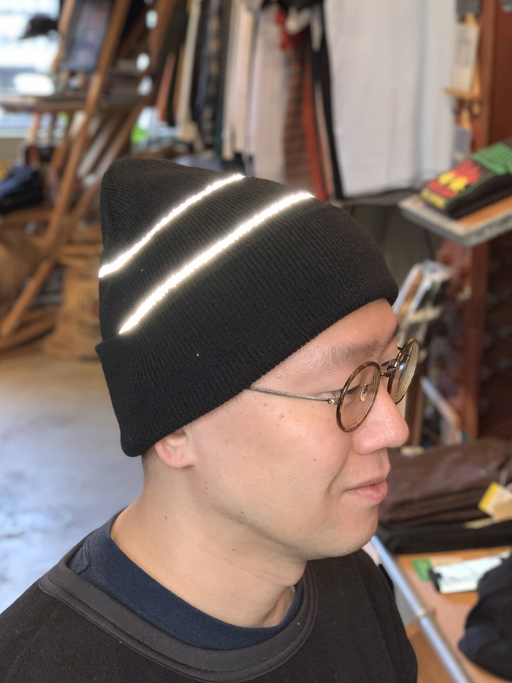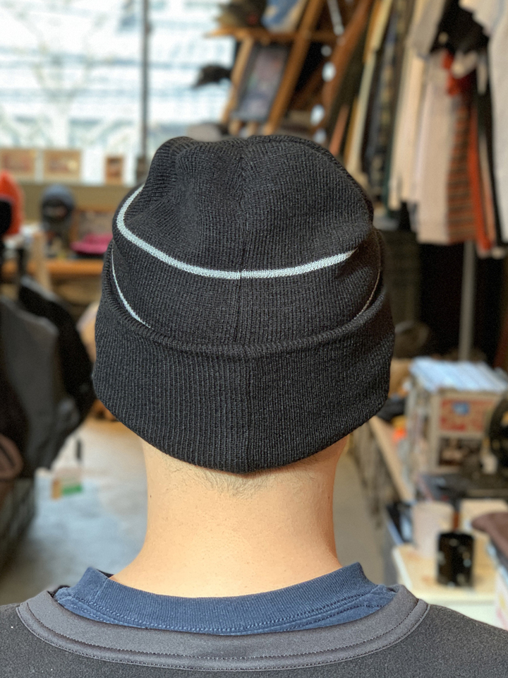 リフレクタープリントのラインが入った折り返しビーニーです。