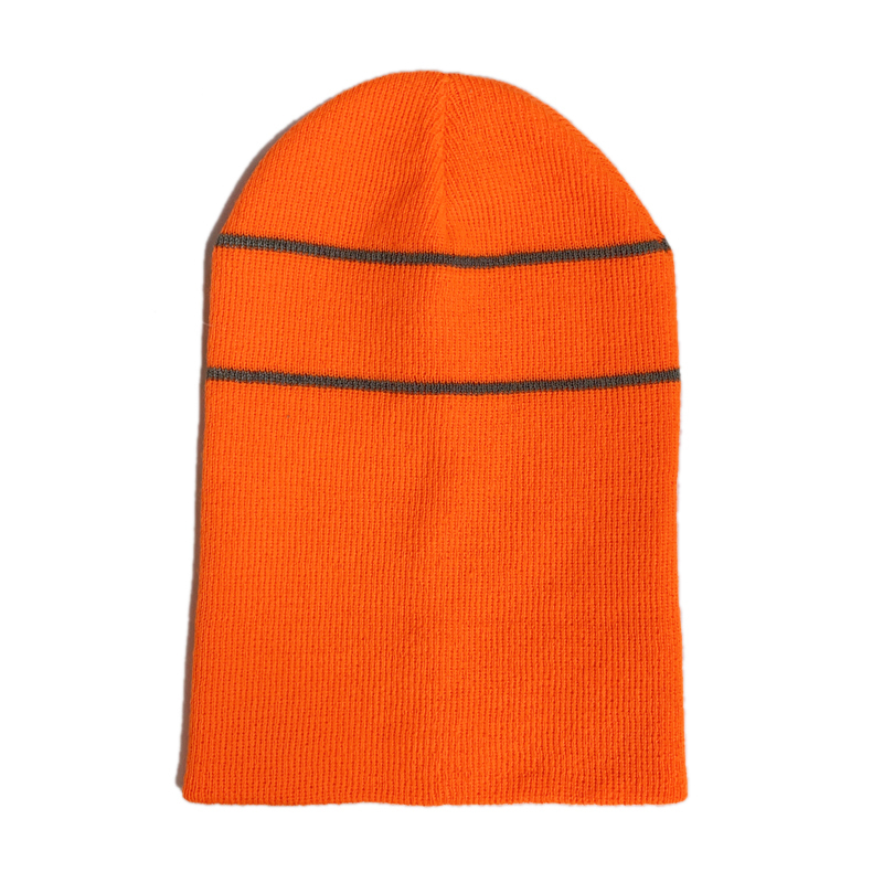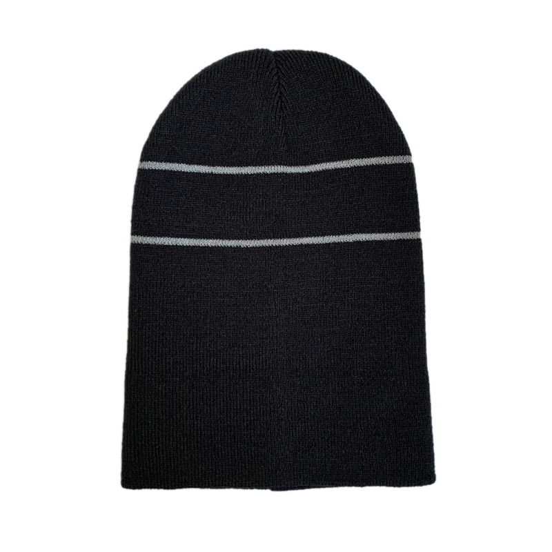 二重編みのしっかりしたアクリルニットで、アクセントに反射性のあるラインプリントが入っております。