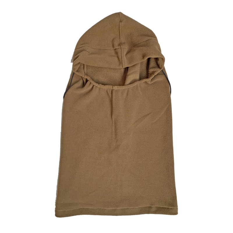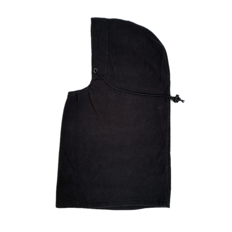 いわゆる防寒具として使用するバラクラバ(目出し帽)フリース素材で非常に高い保温性があり、独立したフードとして使用したり首に下ろせばマフラーやネックウォーマー代わりになります。