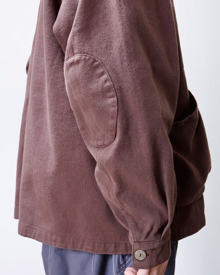 エルボーパッチに袋状の独特なポケット、ボタンや背中のハンガーループ等の細部にこだわりが有ります。