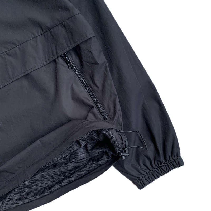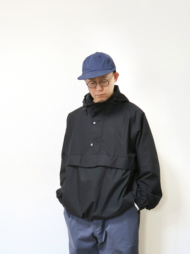 フロントのハーフジップも深めで身幅もゆったりなので、脱ぎ着のしやすいアノラックになっていてインナーには、ロンTにクルーネックスウェット、ネルシャツなんかも合わせれます。