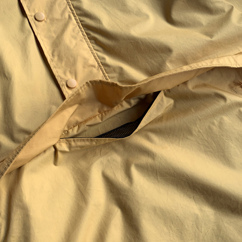 コットン100%ですが高密度のためツルっとしたツヤのないナイロンのような質感で、裏地には身頃部分にはメッシュ素材、袖の裏地にはポリエステル生地が付いております。